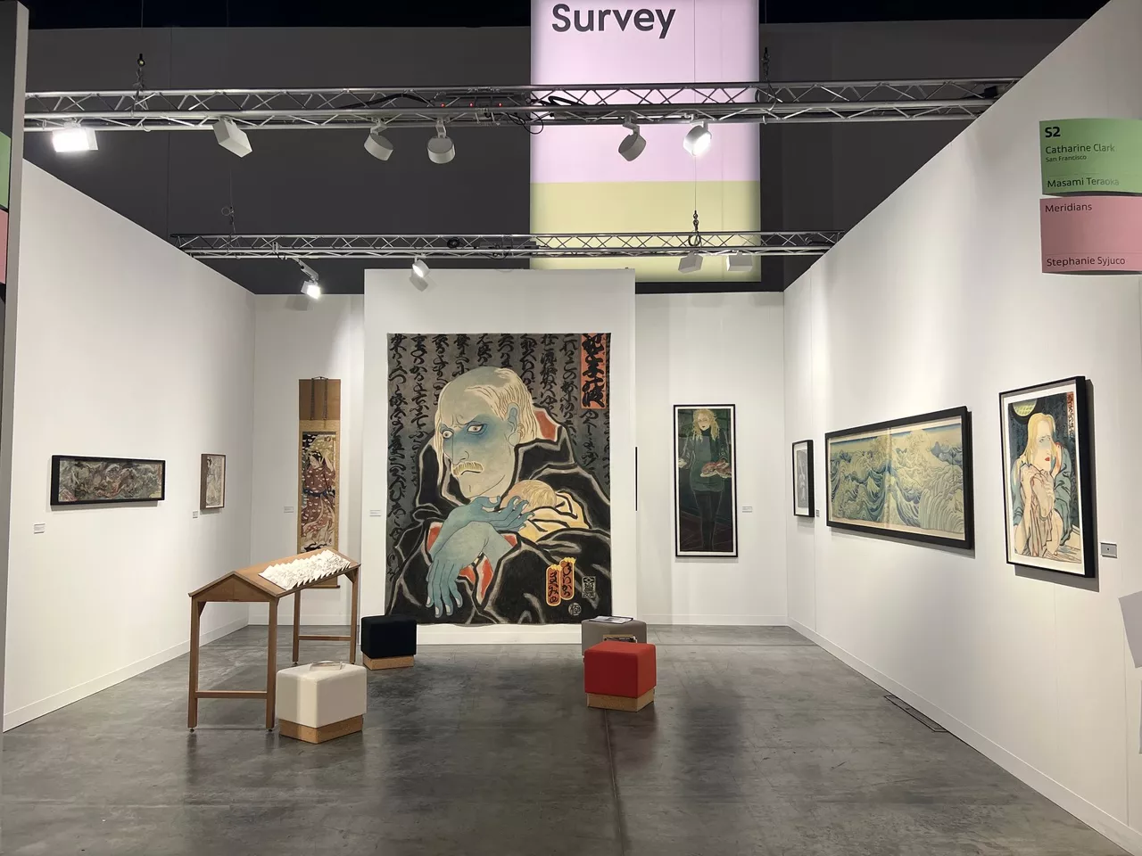 Una obra que se creía perdida resurgió como una joya del mercado histórico. Su espiral cromática, presentada por Eric Firestone Gallery, se volvió un ícono instantáneo de la feria.