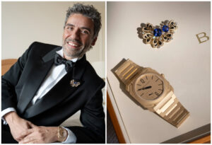 Veamos a continuación las opciones que seleccionaron algunas estrellas en cuanto a broches de lujo. Patrick Schawarzenegger llevó un broche llamativo e imponente, una joya creada por la marca Tiffany & Co. La creación con motivos florales fue elaborada en oro de 18K y diamantes. Otro que decantó por la utilización de broches fue Connor Storie, quien utilizó igualmente un diseño de la marca estadounidense. La pieza ‘Bird on a Rock’ de Jean Schlumberger se encuentra elaborada en oro amarillo de 18K y platino. Tiene la forma de un pájaro con un zafiro rosa y diamantes engarzados, el ave posa sobre una roca de tanzanita en talla esmeralda.