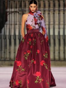 Se centró en las flores. Quiso homenajearlas, incluyéndolas en distintas opciones de vestimenta. Vestidos repletos de claveles (la flor nacional de España) fueron parte también de la entrega como simbolismo de amor y tradición. Igualmente incorporó violetas y rosas.