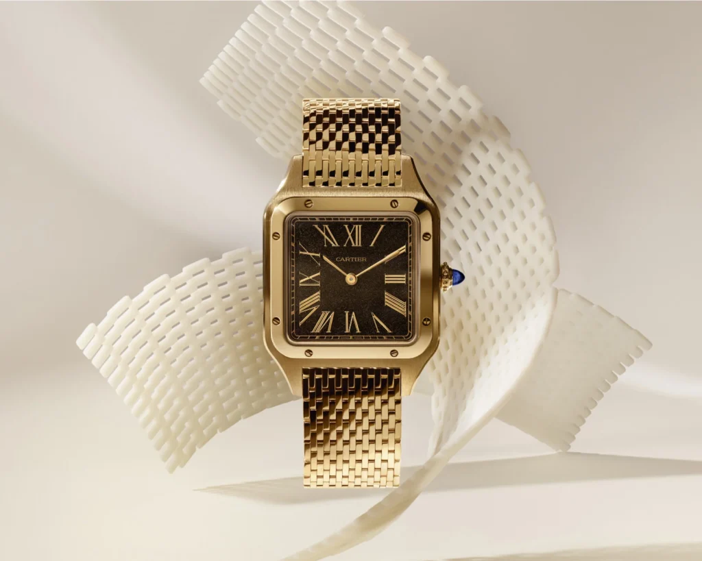 Inspirado en el aviador brasileño Alberto Santos-Dumont, el nuevo Cartier Santos-Dumont introduce un brazalete metálico flexible que evoca la elegancia de los años 20. Su construcción —compuesta por cientos de microeslabones— ofrece una sensación sedosa sobre la piel.