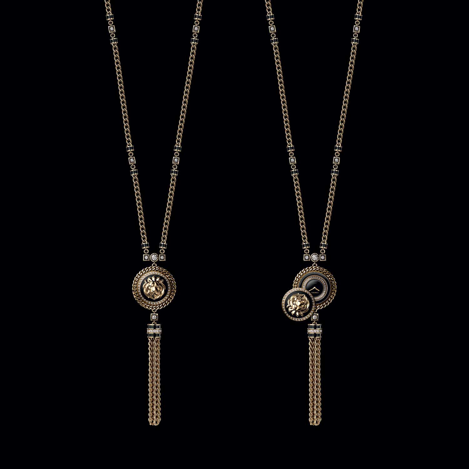 Disponible en formato anillo y collar, el diseño esconde la esfera del reloj tras una cabeza de león finamente esculpida en oro y negro. Más que un accesorio, es una pieza de conversación, donde el misterio y la artesanía se entrelazan.