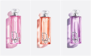 En realidad, son tres las fragancias que integran la colección de Dior Beauty. Ambas coloridas y gourmand llevan la faceta afrutada de las flores de Dior a nuevas cotas. Tres estelas, tres formas de brillar con alegría. El primer perfume se llama Dior Addict Rosy Glow, tal y como lo indica la marca, «revela un glaseado impregnado de esencia de rosa de Damasco y radiantes toques de lichi, envuelto en un acorde cremoso con notas caramelizadas».
