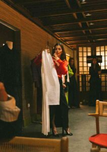 El lanzamiento de la colección fue concebido como una experiencia en dos tiempos, pensada para activar los sentidos y expandir la narrativa más allá de lo visual. En una primera instancia, 22 personas fueron convocadas a un una Degustación del Te y Petit Fours en un Restaurant especializado en el menu Omakase, donde el preview de la colección se integró a un ambiente íntimo, casi ritual, en el que cada pieza dialogaba con la noción japonesa de sorpresa y detalle.