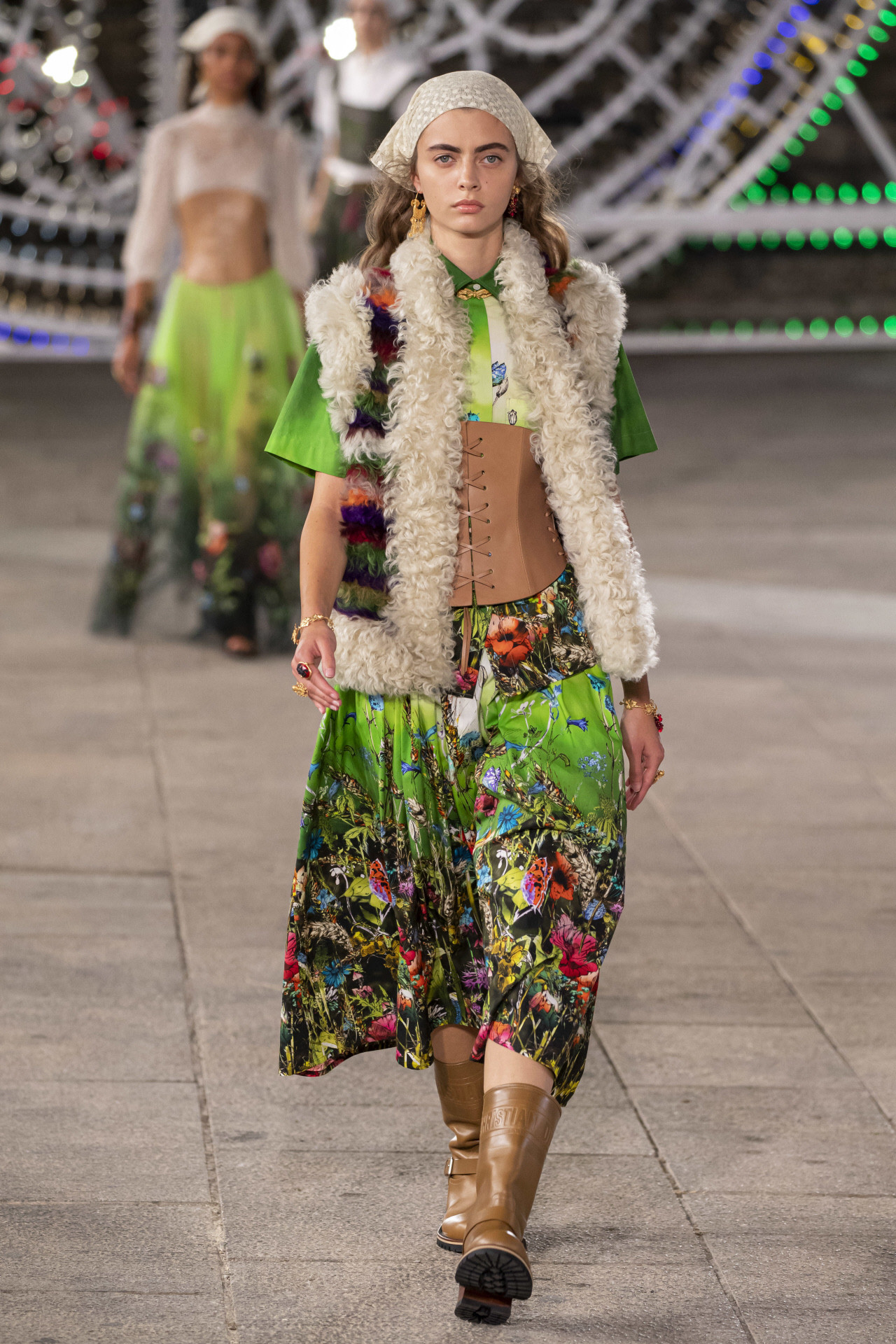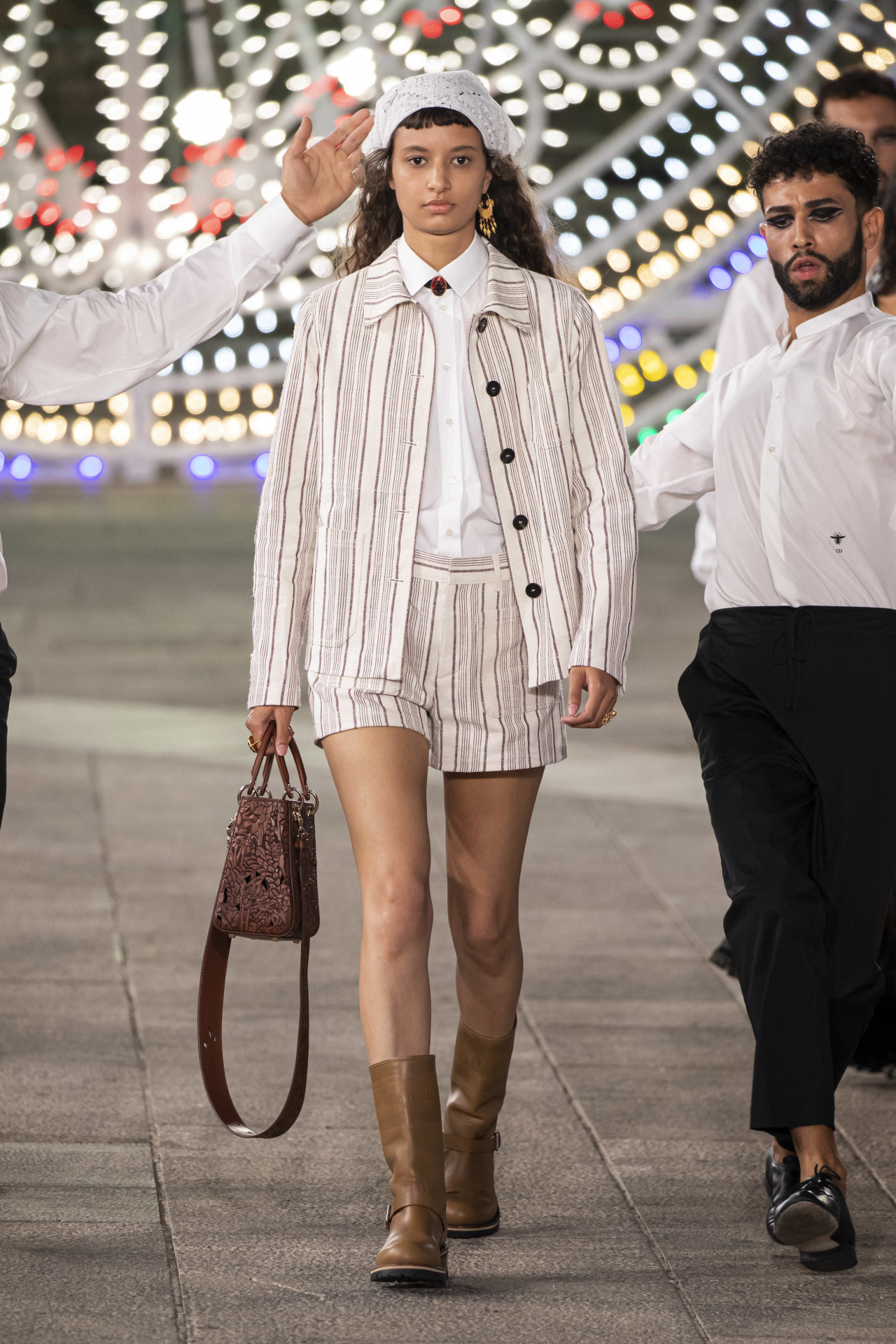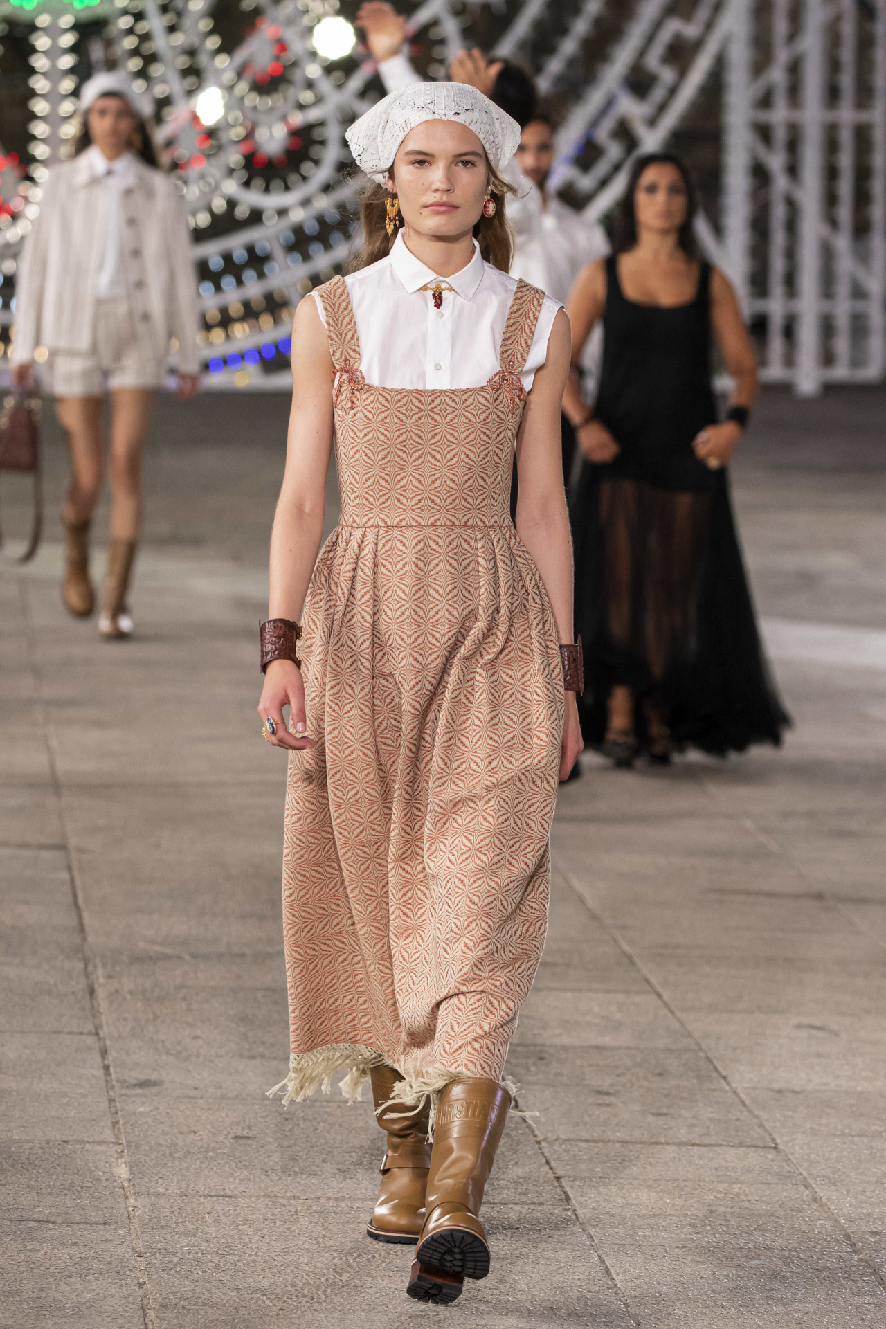 Maria Grazia Chiuri convirtió el pueblo italiano de Lecce en una pasarela cargada de música y arte para presentar una colección de aires bohemios a la vieja usanza italiana. La emblemática Piazza del Duomo de Lecce, en Italia, se llenó ayer de multicolores luminarie (instalaciones tradicionales de luz) para recibir la nueva propuesta de la casa francesa. La encargada de la instalación lumínica fue Marinella Senatore, quien dio brillo a este lugar con más de 30.000 bombillas de led. La nota musical folk tradicional del evento estuvo a cargo de Paolo Buonvino y la danza catártica de la Fundación La Notte della Taranta, coreografiada por Sharon Eyal.