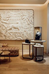 Se ha catalogado así ya que, la reestructurada boutique ubicada en el centro histórico de Bruselas, presenta una propuesta de arte surrealista inspirada en la maison y cuenta con infinidad de elementos de inspiración floral en su interior. La tienda refleja el estilo elegante y clásico que distingue a Cartier, decorado con materiales nobles y alternativos alineados a un enfoque de sostenibilidad. La experiencia de compra en el “jardín de las artesanías” es exclusiva y personalizada en un ambiente íntimo.