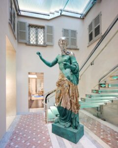 Creada por el arquitecto Peter Marino. Es la más grande de Europa, y, por tanto, donde más piezas Tiffany hay. La estructura de la tienda consta de tres pisos, y cada nivel, es un viaje de arte y joyería exquisita. En uno de estos, por ejemplo, se ubica una galería dedicada a Elsa Peretti, mientras que, en otro, hay toda una sección de Alta Joyería. La boutique cuenta con elementos decorativos alineados con la esencia de la firma, así como con estructuras llamativas: una escalera de vidrio estructural y un tragaluz central. En las vitrinas las joyas coexisten con obras de famosos exponentes como Picasso y Warhol.