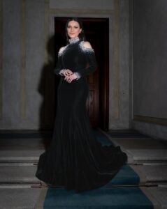 Una elegantísima Laura Pausini capturó la atención de todos los asistentes en los Juegos Olímpicos de Invierno 2026. Si bien una vez más sorprendió con su voz, también lo hizo con su elección de moda. Como parte del tributo al fallecido diseñador italiano Giorgio Armani, la artista se presentó en el evento luciendo un vestido de la firma: totalmente negro con brillos Armani Privé. El modelo forma parte de la colección Otoño-Invierno 2024 de la marca. Se trata en realidad de una pieza de Alta Costura confeccionada en terciopelo de seda, con aplicaciones de perlas y diamantes.