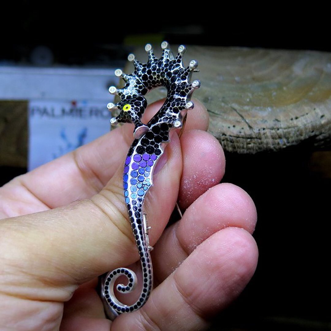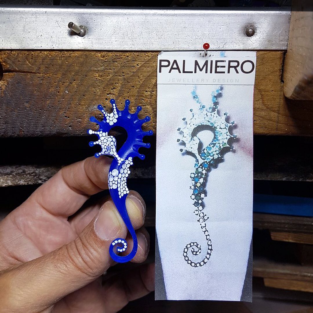 Palmiero es la fuerza impulsora detrás de una de las marcas de joyería italianas más hermosas con sede en Valenza. El avezado joyero combina la fantasía con un profundo conocimiento técnico. Ha adoptado plenamente las reglas para crear auténticas joyas de alta gama. Las piezas se sienten sólidas y muy cómodas de usar. La mayoría de las prendas creadas por Palmiero Jewellery Design son una metáfora de la belleza natura, bien reflejada en su línea más reciente que rinde tributo al cosmos submarino.