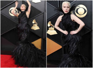 Lady Gaga luciendo gloriosa en la red carpet de los Grammy 2026↓