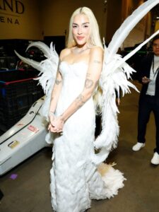 Elena Rose: La cantante venezolana se inclinó por ese diseño blanco con plumas.