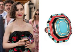 Emily en París Temporada 5: Emily lleva un anillo de malaquita Grab n Go se ve en varios episodios.