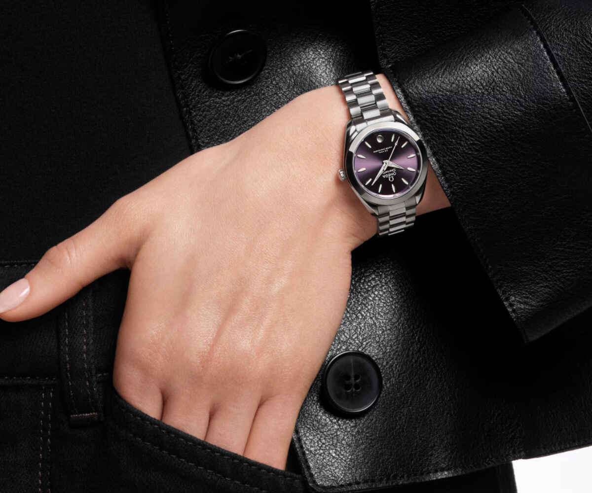El reloj se presenta con un brazalete integrado de acero noble formado por eslabones pulidos, cepillados y hermosamente redondeados y equipado con un cierre desplegable de mariposa y el sistema de ajuste «easy comfort» de OMEGA.