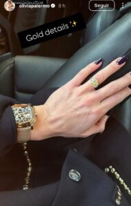 Por medio de sus redes sociales la bloguera estadounidense exhibió el reloj seleccionado para acompañarla en sus apariciones. A través de algunas historias, presentó la joya relojera, misma que combinó con un fino traje sastre y anillo con gema de gran tamaño de color. Sin embargo, el guardatiempo lo usó también con otro look en color marrón y rosa.