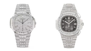 El modelo de Georgina Rodríguez, también de la marca Patek Philippe es el Nautilus Ref. 5980/1400G en oro blanco. Engastado con diamantes, combina la arquitectura deportiva del Nautilus con un tratamiento de alta joyería. ¿Su valor? Tiene un precio que oscila entre los 700 mil y 750 mil dólares.