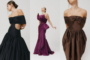 Pero esta vez Morales va un paso más allá, y demuestra su maestría en el drapeado y los plisados, interpretando los nudos en corpiños y cinturas, un trabajo de escultor de tejidos que parece moldear la tela sobre la piel. Juega con diferentes formas, desde la verticalidad absoluta de los vestidos columna -que endiosan la figura femenina-, hasta el dinamismo de las maxi faldas; retándose también con los escotes halter y off the shoulder, que actúan como marcos que resaltan la anatomía femenina, llevando esta colección a una delicadeza de talla clásica.
