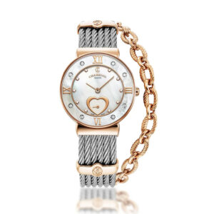 1.Reloj Charriol St Tropez: Un reloj con símbolos románticos. Sin duda, un bello guardatiempo como este sería un regalo perfecto. Creado en oro por la marca Charriol. De 30 mm, caja de cuarzo, diamantes y madre perla.