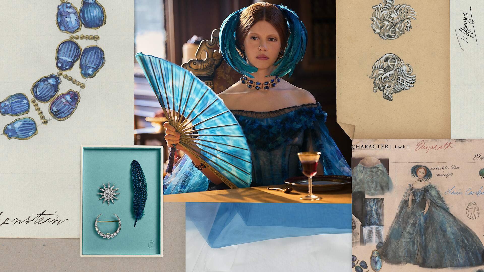 La diseñadora de vestuario Kate Hawley —reconocida por su minucioso trabajo visual— fue la encargada de integrar las joyas al universo gótico y poético del filme. De las piezas presentadas, 10 pertenecen al archivo histórico de Tiffany & Co., seis son objetos de plata antiguos, seis provienen de sus colecciones contemporáneas y cinco fueron diseñadas exclusivamente para esta producción.