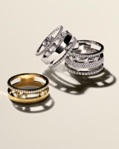 La marca Messika presenta su nueva colección de joyas, piezas creadas a partir de diamantes en movimiento, rodeados de luz. La línea lleva por nombre Move Romane y se encuentra constituida por creaciones en oro y diamantes, engastados en paralelo. Las filas se multiplican, dos o tres, cada versión con una definición única, la ilusión de apilamiento se mantiene en movimiento.