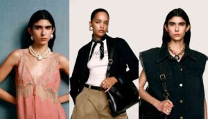 La colección que evoca el workwear estadounidense en su totalidad ofrece una amplia variedad de prendas, entre piezas de indumentaria, accesorios y joyería. Sobre la ropa, hay sastrería, faldas lápiz de estructura marcada y camisas de manga corta en cupro con acabados al corte. De igual manera, la línea cuenta con calzado de varias texturas, así como cinturones y bolsos como complementos.
